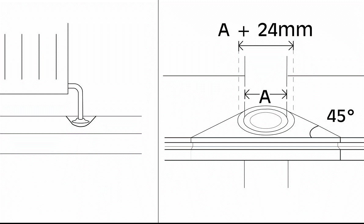 Dies ist auch an festen Punkten wie z. B. Säulen oder festen Küchenschränken einzuhalten. Küchen gelten als feste Installationen.
