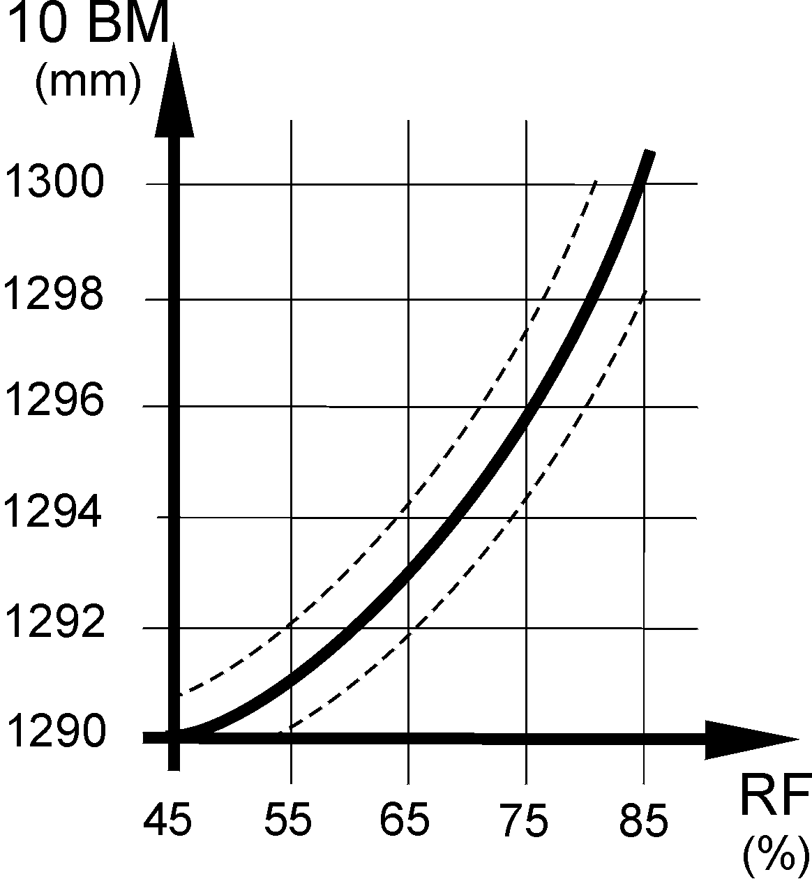 Das 10-Dielen-Maß wird auf der Grundlage der erwarteten maximalen relativen Luftfeuchtigkeit im Gebäude bei ganzjähriger Nutzung gewählt, siehe Abb. 3.