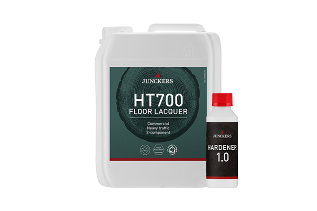 - Unbehandelte/maschinengeschliffene Böden müssen mit Junckers WB Primer grundiert werden, bevor sie mit HT700 Floor Lacquer fertiggestellt werden.