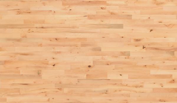 Buche ist eine der häufigsten Hartholzarten. Die ausgezeichnet dehnbare Festigkeit, die gleichmäßige Maserung mit weißem bis rotem Splintholz und das rot-braune Muster bieten einen strapazierfähigen Boden, der sich vorzüglich für alle Sportarten und Tanzaktivitäten eignet.